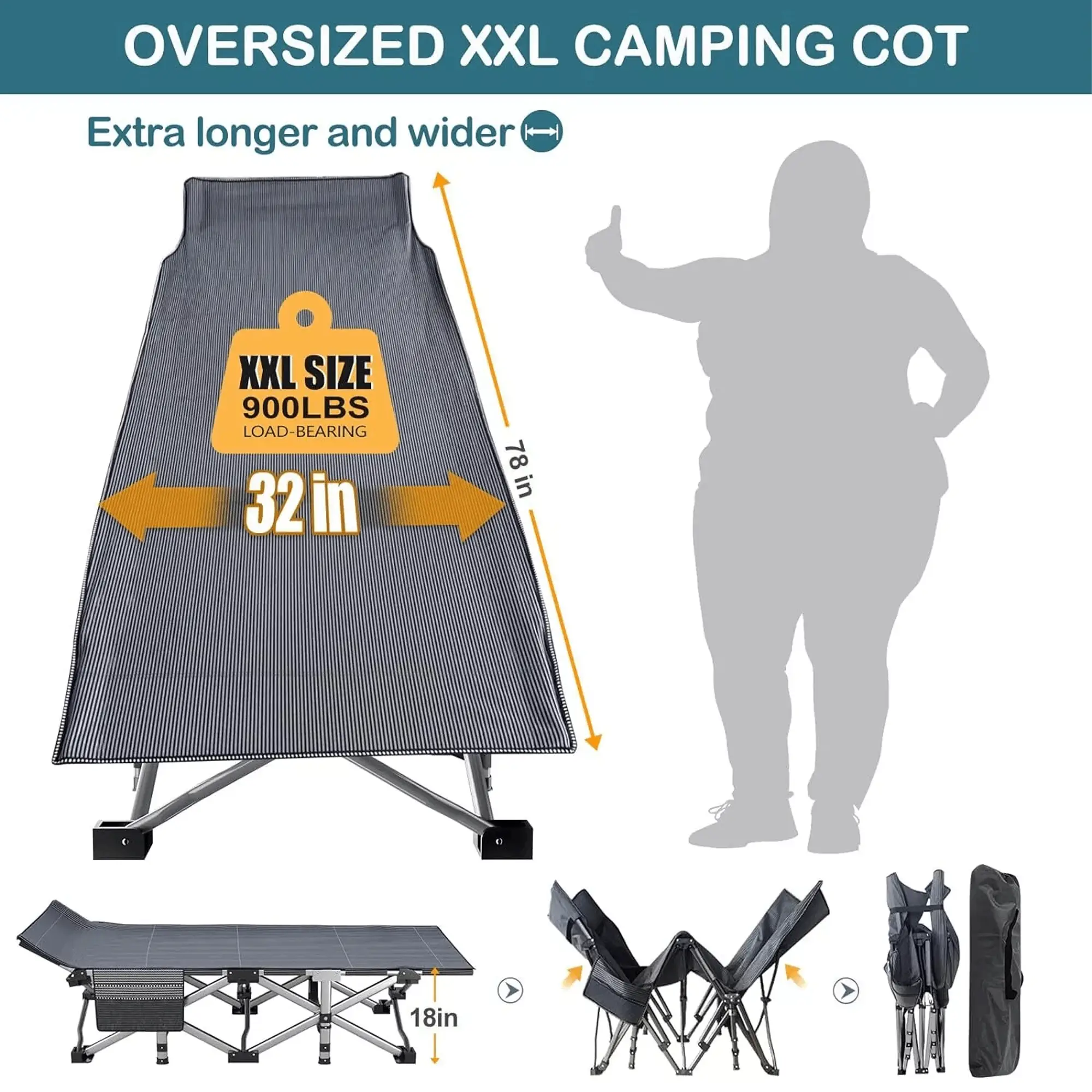 ❀:Our heavy duty cot for big guys has a maximum unfolded size of 83 * 16 * 32 inches, which is larger than all sellers’ sizes on the market, It will definitely exceed your expectations!