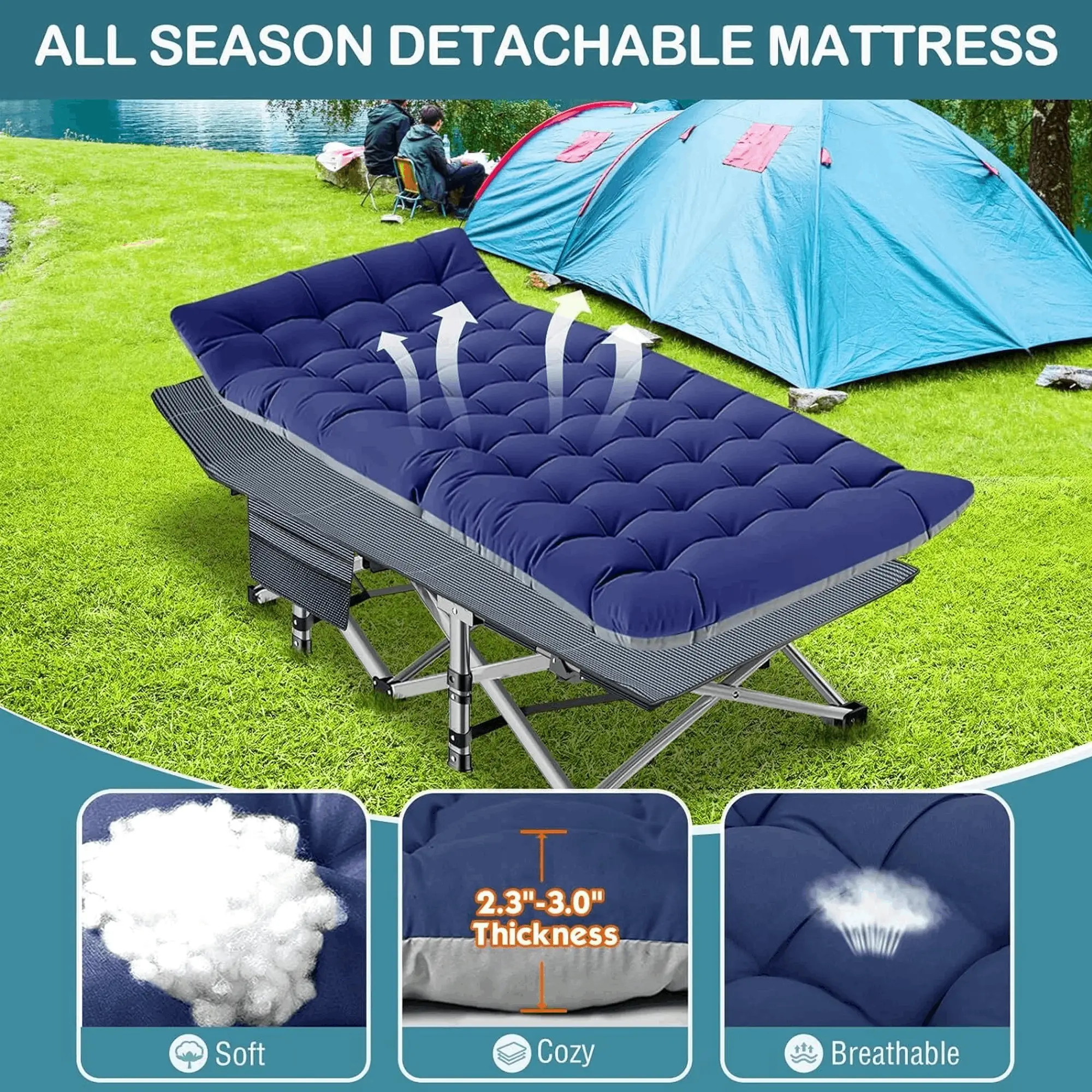 ❀:Our oversized comping folding bed does not require assembly,ready for use upon unfolding and can be effortlessly folded within seconds.